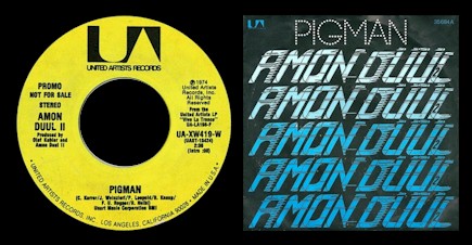 West German release - 1974's "Pigman" b/w "Mozambique" (United Artists catalog number 35 684 A) US release - 1974's "Pigman" b/w "Pigman" (United Artists catalog number UA-XW419-W) 5.) Mañana ((Robby Heibl - Chris Karrer - Renate Krötenschwanz Knaup - Peter Leopold - Falk Rogner - John Weinzierl) - 3:20 rating: *** start Sporting a breezy Latin flavored melody, I guess these counterculture outlaws had been vacationing in Spain, or Latin America. In spite of Karrer's heavily accented vocals, perhaps a result of the cool, effects laden guitar solo, I have to admit I was okay with this one. 6.) Ladies Mimikry (Robby Heibl - Chris Karrer - Renate Krötenschwanz Knaup - Peter Leopold - Falk Rogner - John Weinzierl) - 3:18 rating: *** start Powered by Weinzierl's fuzz bass, sharp violin and Karrer's extended discordant sax solo, the spiky "Ladies Mimikry" added an element of punk/new wave to their sound. Again, Karrer's heavily accented vocals and bizarre lyrics weren't going to be for everyone.