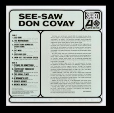 "See-Saw" track listing: (side 1) 1.) Seesaw (Don Covay - Steve Cropper) - 2:57 rating: **** stars Admittedly, just like she appropriated Otis Redding's "Respect" Aretha Franklin made her version of "See Saw" the standard. Still, Covay's version came in a close second. Written with guitarist Steve Cropper and recorded with the cream of Stax studio musicians, it was easily one of his finest performances. Admittedly his raspy Rufus Thomas styled backing vocals were unusual, but decades after it was recorded the performance still jumps with joy and energy. Worth the price of the album on its own.