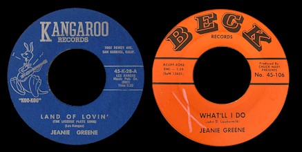As Jeanie Greene 1964 found her recording a series of one-off singles for the small California based Kangeroo label and the West Virginia Beck label.