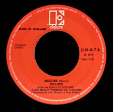 (side 2) 1.) Angelina (Tim Moore) - 3:10 rating: *** stars A pretty harpsichord powered ballad with a nice chorus and great band backing vocals, Moore's wispy vocals gave "Angelina" an English pop flavor. The track was tapped as a single in the UK. In the States it appeared as the "B" side on their "Every Day's a Lovely Day" single.