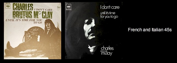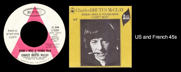Apparently recorded on the heels of his French television exposure, McClay seemingly recorded some new material, "Little Mad Girl" CHARLES BRUTUS MC CLAY // LITTLE MAD GIRL, "Blue Eyes" CHARLES BRUTUS McCLAY// "BLUE EYES" and what was one of his best songs - "Rainbows ... After Rain". YouTube has the promotional video for the song: CHARLES BRUTUS MCCLAY // "RAINBOWS...AFTER RAIN"
