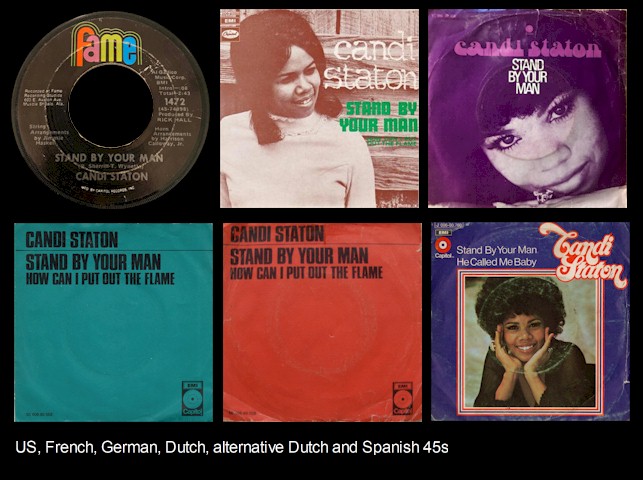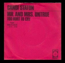 Courtesy of YouTube I found a live performance of the tune: http://www.youtube.com/watch?v=pCY6k4tUULw 2.) How Can I Put Out the Flame (When You Keep the Fire Burning) (George Jackson - Raymond Moore) - 3:10 rating: **** stars Anyone who doubted Staton's Southern soul credentials only need to check out this slow burner. Killer performance. The song also appeared as the "B" side on her "Stand By Your Man" single. 3.) I'm Just a Prisoner (Of Your Good Lovin') (George Jackson - Edward Harris) - 3:08 rating: **** stars That weird little hook she had in her voice was just amazing ... bluesier than some of her pther work, but when the backing singers kicked in ... Talk about an Aretha Franklin vibe - heavenly. 4.) Mr.and Mrs. Untrue (Toni Wine- Joey Levine) - 3:26 rating: **** stars Few artists can pull off a cheatin' tune as well as Staton. Perhaps then-husband Clarence Carter ... The joy, pain and regret in her voice was simply palatable. Throughout most markets this track was tapped as the "B" side to her "Too Hurt To Cry" 45. The exception with Holland where it was released as an "A" side 45: