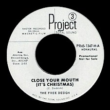 ARTIST: The Free Design SONG TITLE: Close Your Mouth (It's Christmas) WRITER(S): Chris Dedrick RUNNING TIME: 2:08 YEAR: 1968 YOUTUBE LINK: Close Your Mouth (It's Christmas)