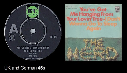 - 1971's "You've Got Me Hangin' From Your Lovin' Tree" b/w "I Don't Wanna Go To Sleep Again" B&C catalog number CB 154)