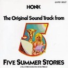 The same year high school buddy/film producer Jim MacGillivray hired the band to provide incidental music for a surf film he'd produced with partner Freeman. I've never seen the film, but Freeman and Greg MacGillivray's documentary "Five Summer Stories" is supposedly the ultimate surfer flick. Reporetedly paid $1,500 for their work, the accompanying soundtrack album briefly turned the Laguna Beach, California-based band Honk into pseudo-stars.