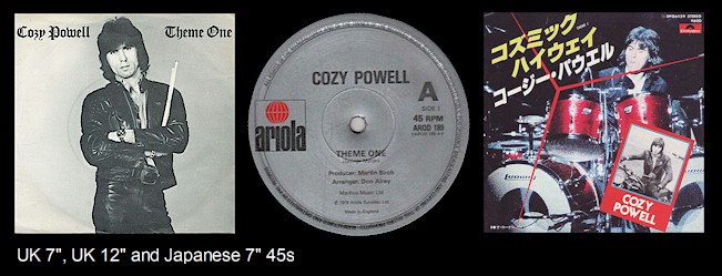 7" UK pressing - 1979's "Theme One" (instrumental) b/w "Over the Top" (instrumental) (Ariola catalog number ARO 189) 12" UK pressing - 1979's "Theme One" (instrumental) b/w "Over the Top" (long version) (instrumental) (Ariola catalog number AR0D 189) 2) Killer (instrumental) (Don Airey) - 7:16 rating: ** stars "Killer" offered up sort of a boogie-meets jazz rock fusion tune with Bruce's bass and Airey's synthesizers again front and center. What was with the light saber sound effects? Talk about a patented early '80s sound. YouTube has a shortened performance of the song recorded at a January 1980 performance on the BBC's Old Grey Whistle Test television program. While most of the attention went to Bruce and Powell, the performance left me wondering how Clempson remains such as overlooked player. Cozy Powell feat. Jack Bruce - Killer (Old Grey Whistle Test, 8th Jan 1980) 3.) Heidi Goes to Town (instrumental) (Cozy Powel - Don Airey) - 2:57 rating: *** stars Apparently named after Powell's dog, "Heidi Goes to Town" was s side one's most pleasant melody. The synthesizers gave the track a slightly classical flavor. It was tapped as the album's third and final English single: