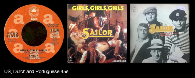 The group's first UK single was "Traffic Jam" from their first album, Sailor. SAILOR - Girls Girls Girls, A Glass Of Champagne, The Secretary, La Cumbia... The USA liner notes of the 1974 "Sailor" album: