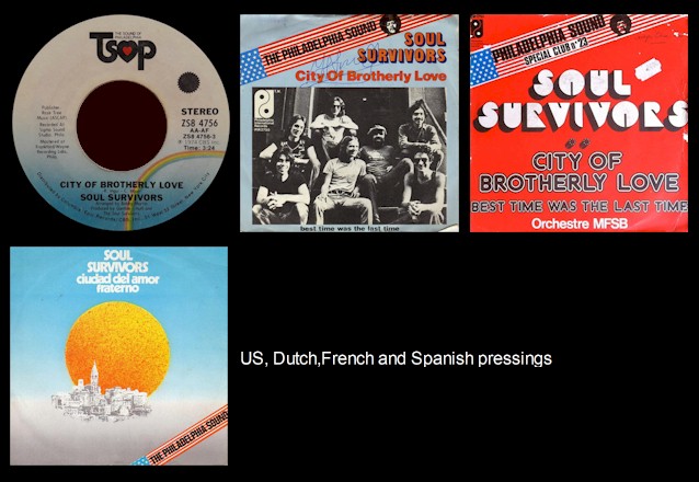 - 1974's 'What It Takes' b/w 'Virgin Girl' (TSOP catalog number ZS8 4760) 2.) Everything's Changing (Neil Larsen - Richard Ingui) - 3:52 rating: **** stars As a big Rascals fan I liked the ballad 'Everything's Changing.' Given how much the jazzy ballad sounded like Felix Cavaliere and company, I can only guess that The Soul Survivors were also big Rascals fans. Docked a star for the lack of originality. 3.) City of Brotherly Love (Richard Ingui - Charles Ingui) - 3:23 rating: ***** stars With a great "slow dance" melody, ear candy refrain and those "uplifting" lyrics that Gamble and Huff so admired, 'City of Brotherly Love' deserved to have been a classic Philly International performance. Tapped as the lead-off single, its hard to understand how the tune was overlooked. One of the album's highlights ...
