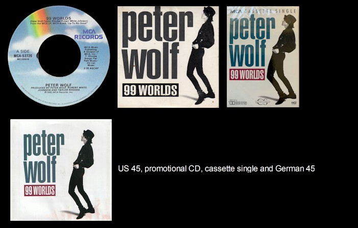 Good" track listing: 1.) 99 Worlds (Peter Wolf - Taylor Rhodes - Robert White Johnson) - 3:35 rating: **** stars I certainly liked the bouncy opener "99 Worlds" but the basic rhythm sounded like it had been lifted from a mid-'60s Motown track and then mashed-up with a Stones tune to give it more of a rock edge. Admittedly Wolf sounded in good form throughout and if you were going to borrow, Motown and The Stones weren't bad sources. Easy to see why MCA floated it as the leadoff single, though it was dead on arrival. After I'd listened to the album a couple of times I discovered the liner notes included song-by-song comments from Wolf: "The construction and rhythm section of this song is influenced by early Motown (i.e. Edwin Starr, Marvelletes). The horn arrangement lends itself more to the Philly sound of Tom Bell."